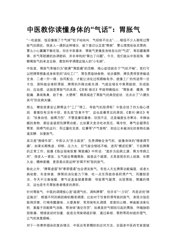 中医教你读懂身体的“气话:胃胀气