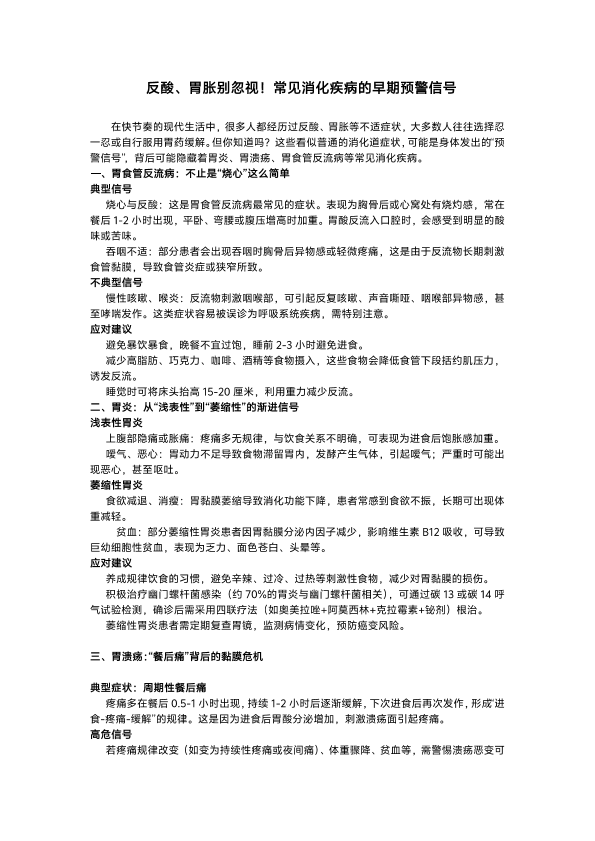 反酸、胃胀别忽视!常见消化疾病的早期预警信号