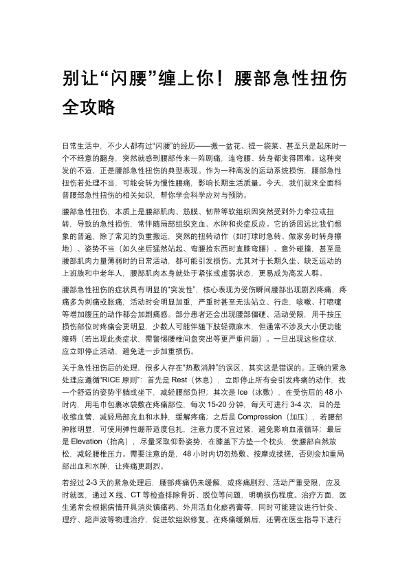 别让“闪腰”缠上你!腰部急性扭伤 全攻略