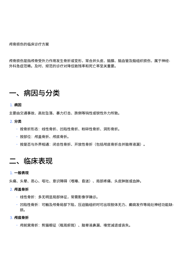 颅骨损伤的临床诊疗方案