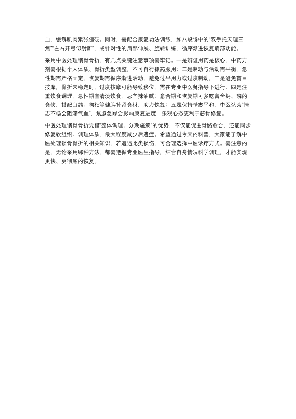 锁骨骨折不用慌,中医处理有良方——全程科普指南