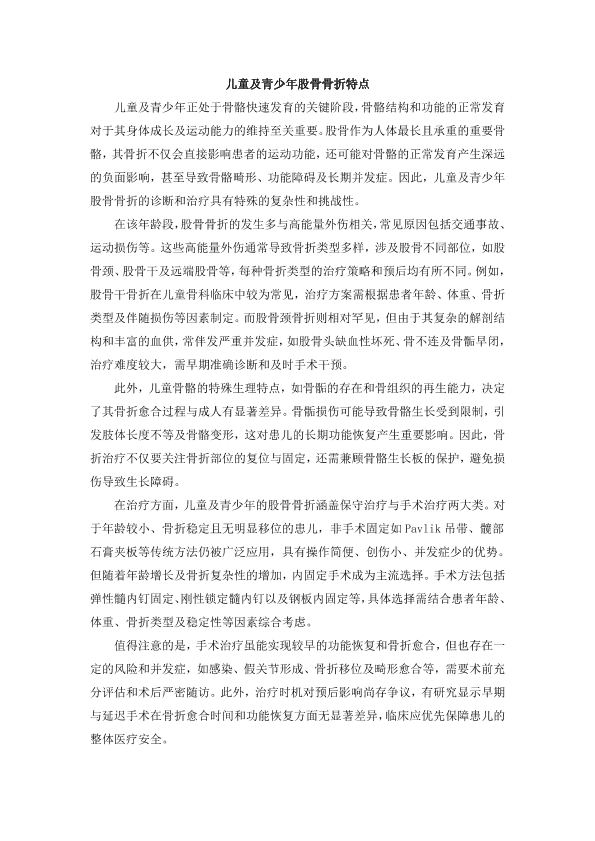 儿童及青少年股骨骨折特点