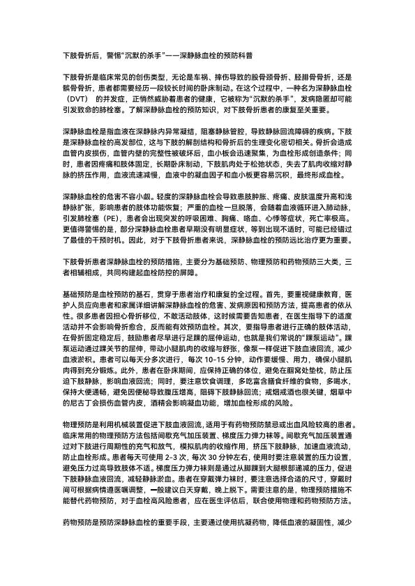 下肢骨折后,警惕“沉默的杀手”——深静脉血栓的预防科普