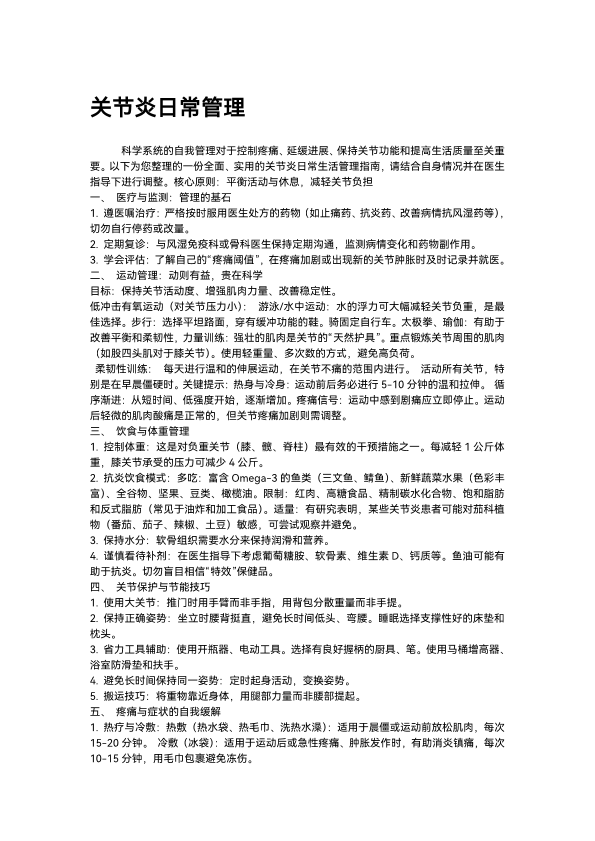 关节炎日常管理