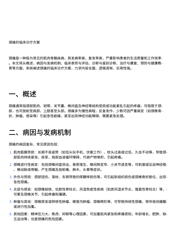颈痛的临床诊疗方案