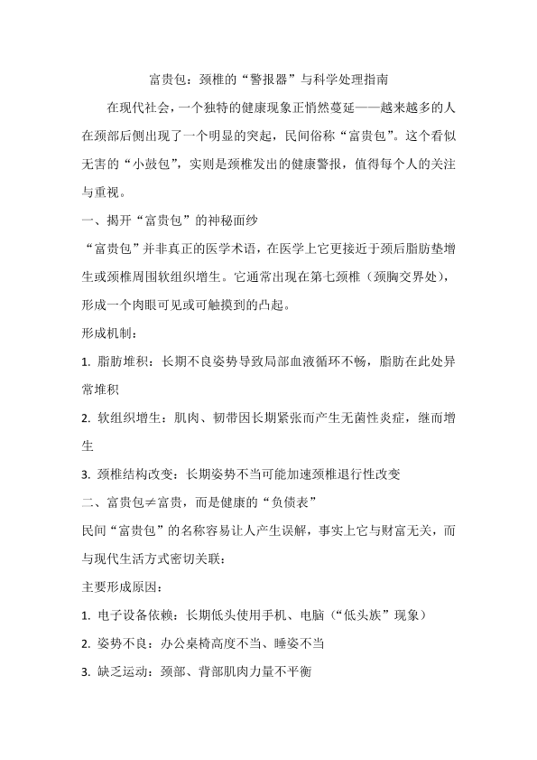 富贵包:颈椎的“警报器”与科学处理指南