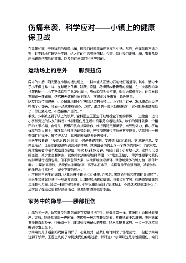伤痛来袭,科学应对——小镇上的健康保卫战