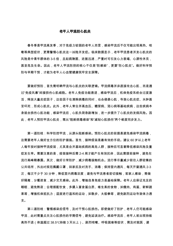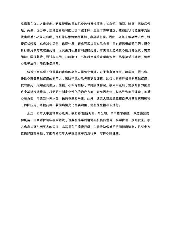 老年人甲流防心肌炎