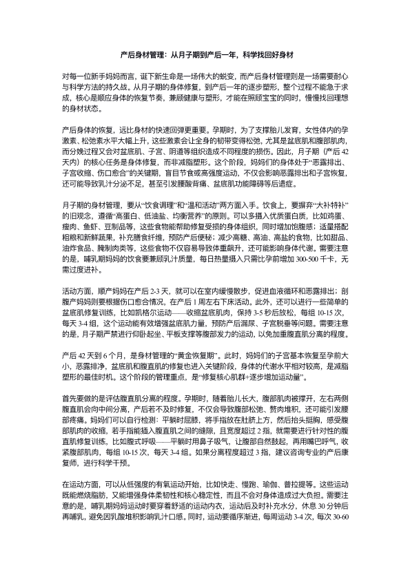 产后身材管理:从⽉⼦期到产后⼀年,科学找回好身材