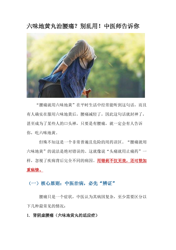 六味地黄丸治腰痛?别乱用!中医师告诉你
