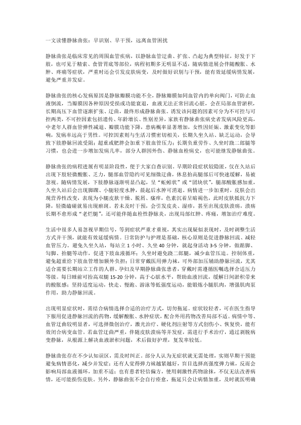 一文读懂静脉曲张:早识别、早干预,远离血管困扰