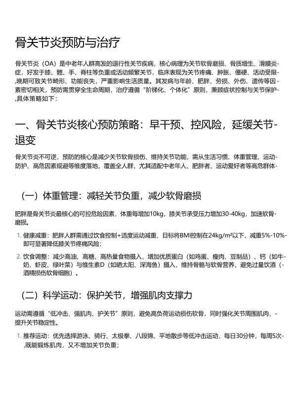 骨关节炎预防与治疗