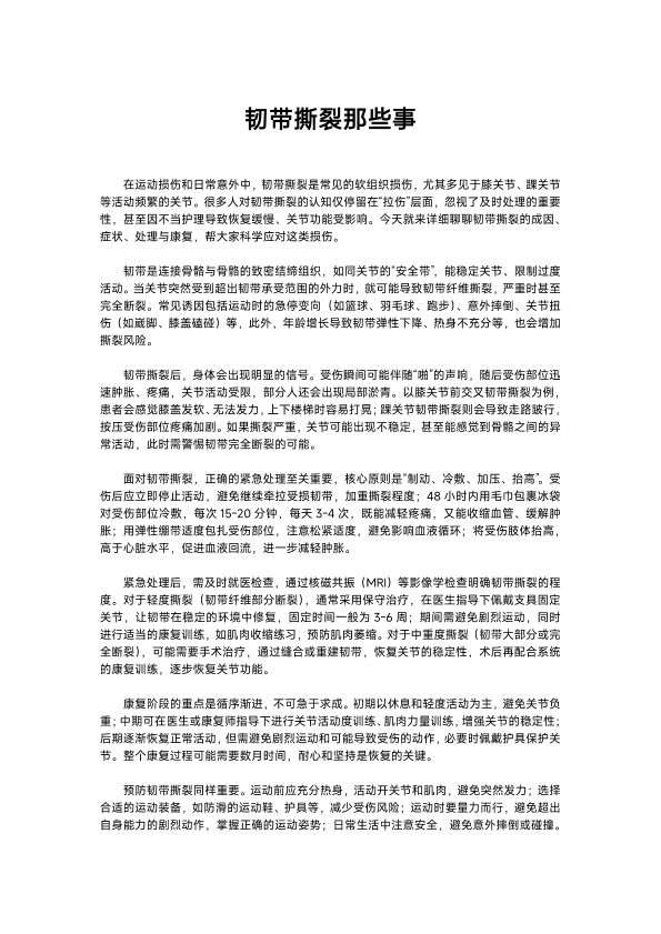韧带撕裂那些事