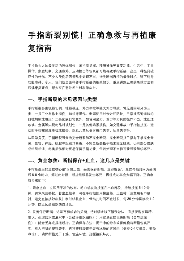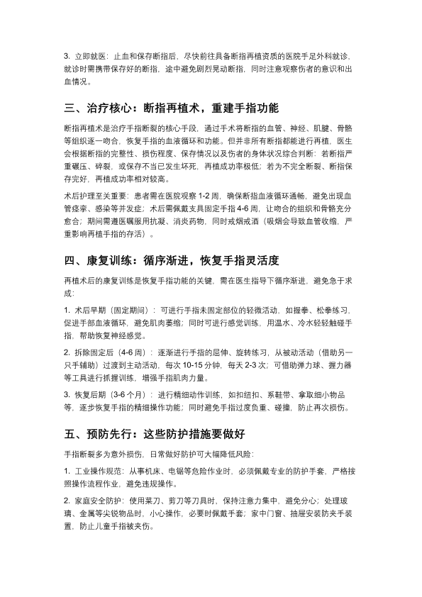 手指断裂别慌!正确急救与再植康复指南