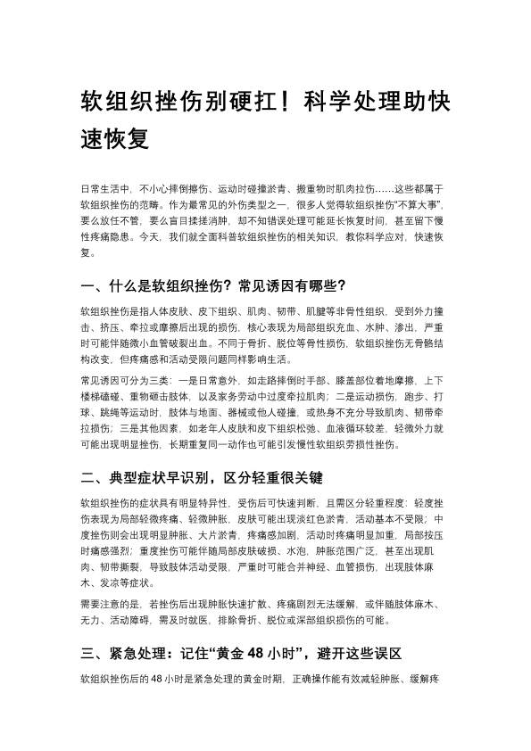 软组织挫伤别硬扛!科学处理助快速恢复