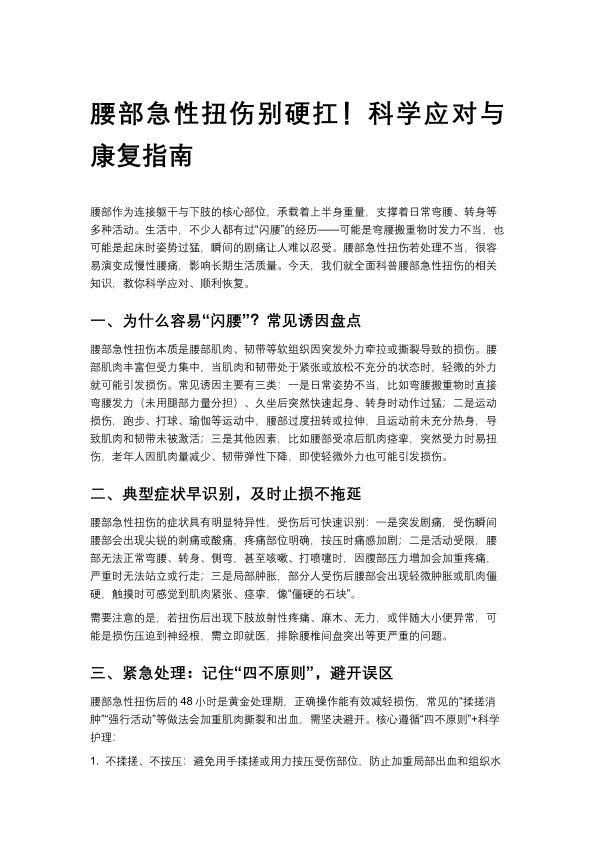 腰部急性扭伤别硬扛!科学应对与康复指南
