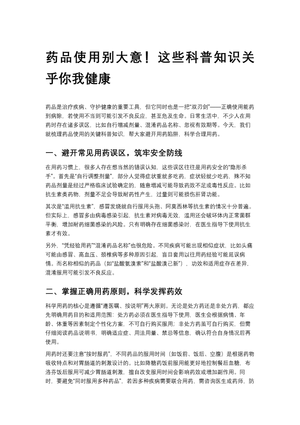 药品使用别大意!这些科普知识关乎你我健康