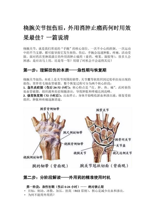 桡腕关节扭伤后,外用消肿止痛药何时用效果最佳?一篇说清