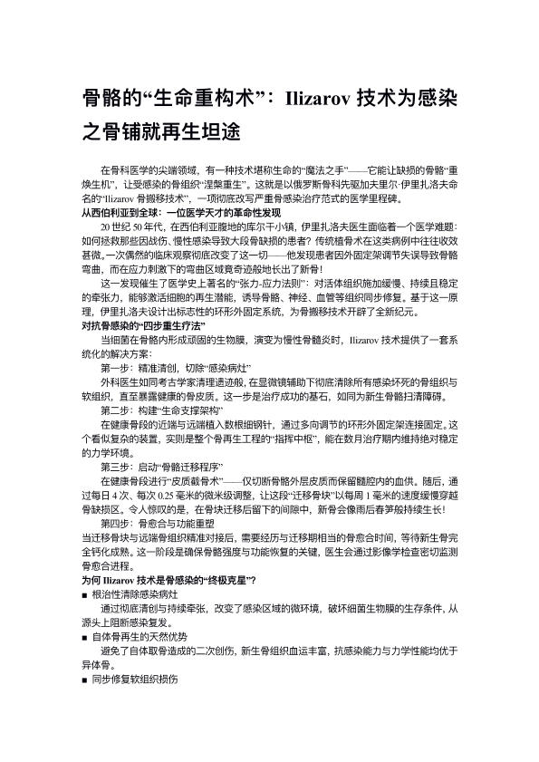 骨骼的“生命重构术”:Ilizarov技术为感染之骨铺就再生坦途