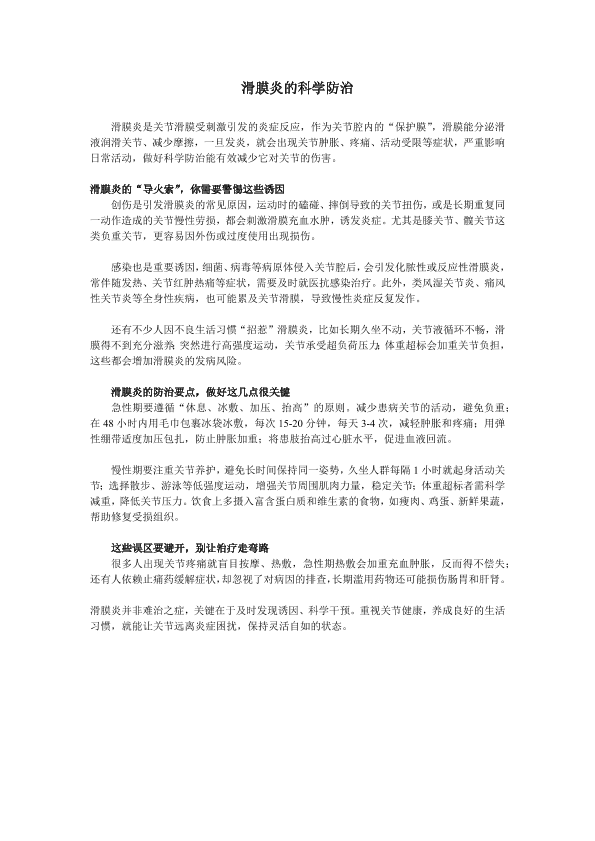 滑膜炎的科学防治