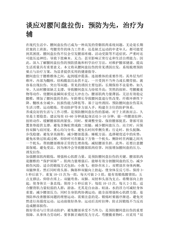 谈应对腰间盘拉伤:预防为先,治疗为辅