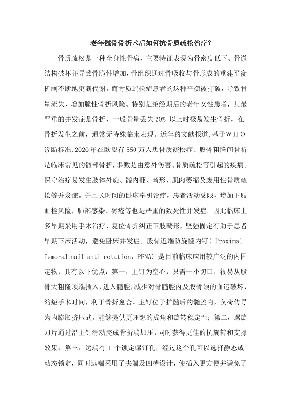 老年髋骨骨折术后如何抗骨质疏松治疗?