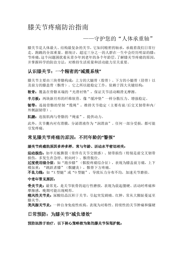 膝关节疼痛防治指南——守护您的“人体承重轴”