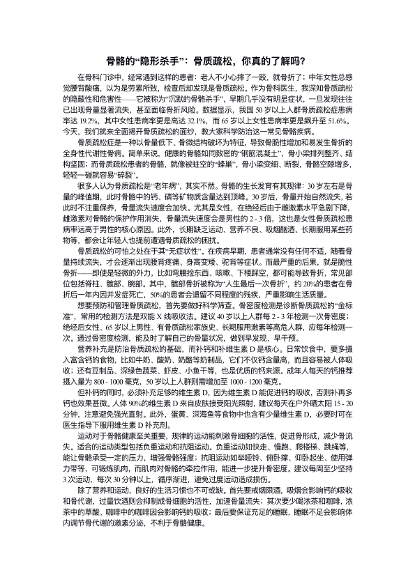 骨骼的“隐形杀手”:骨质疏松,你真的了解吗?