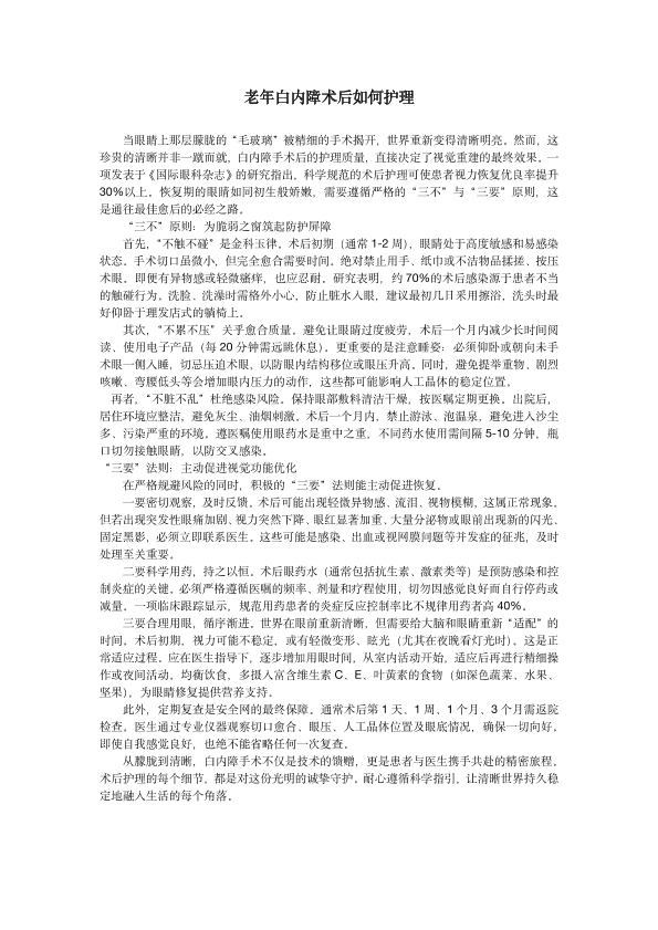 老年白内障术后如何护理