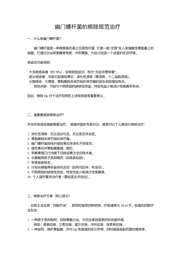 幽门螺杆菌的根除规范治疗