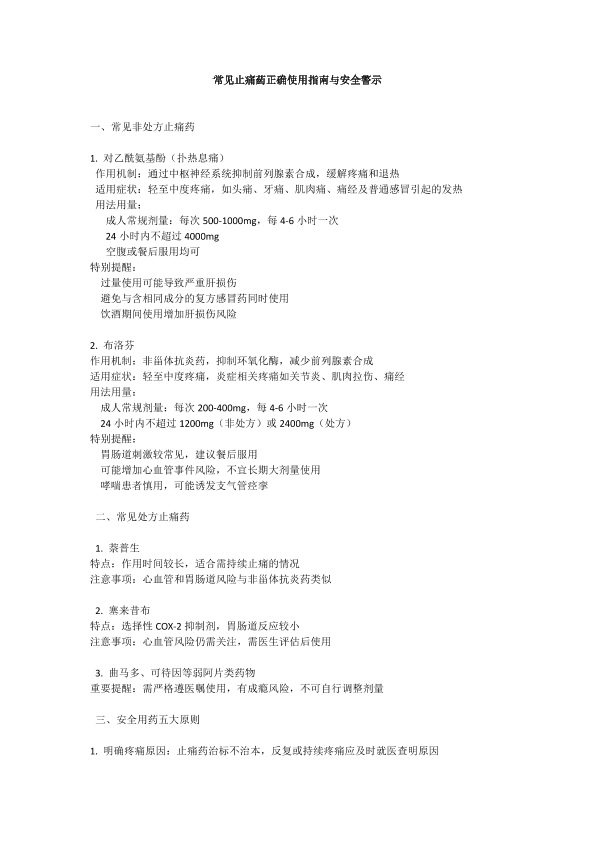 常见止痛药正确使用指南与安全警示