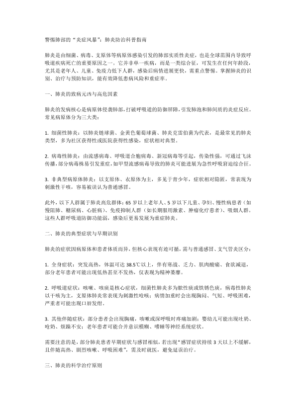 警惕肺部的“炎症风暴”:肺炎防治科普指南