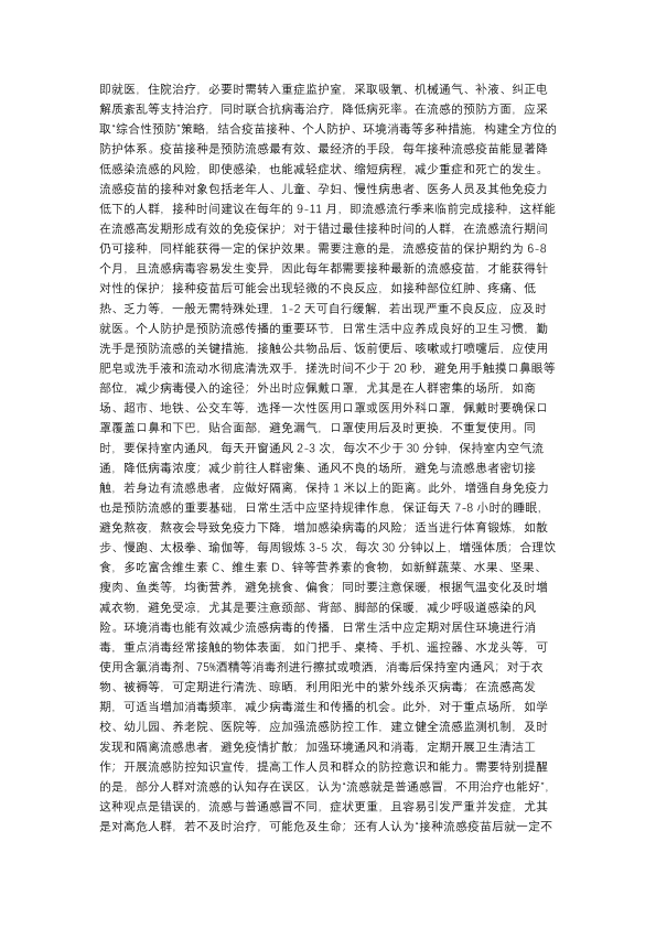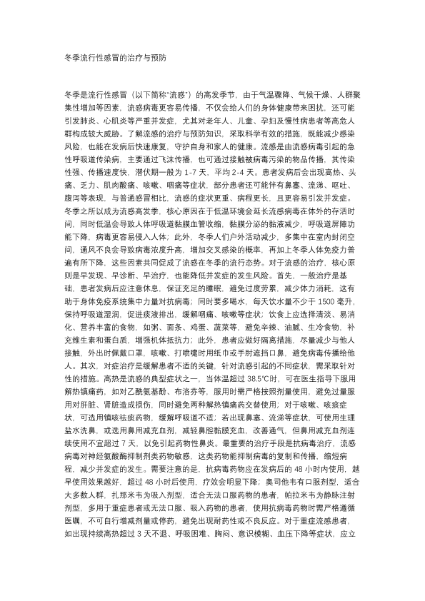冬季的流感的治疗与预防
