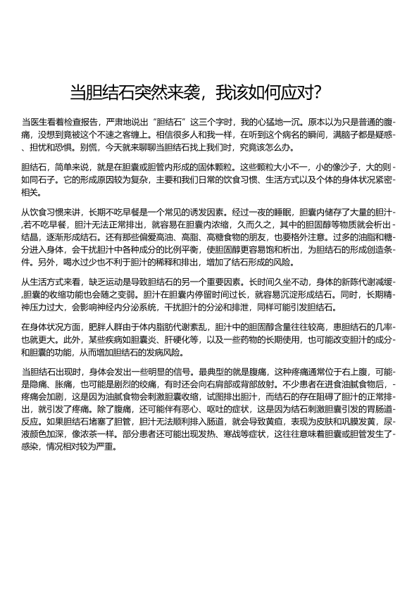 当胆结石突然来袭,我该如何应对