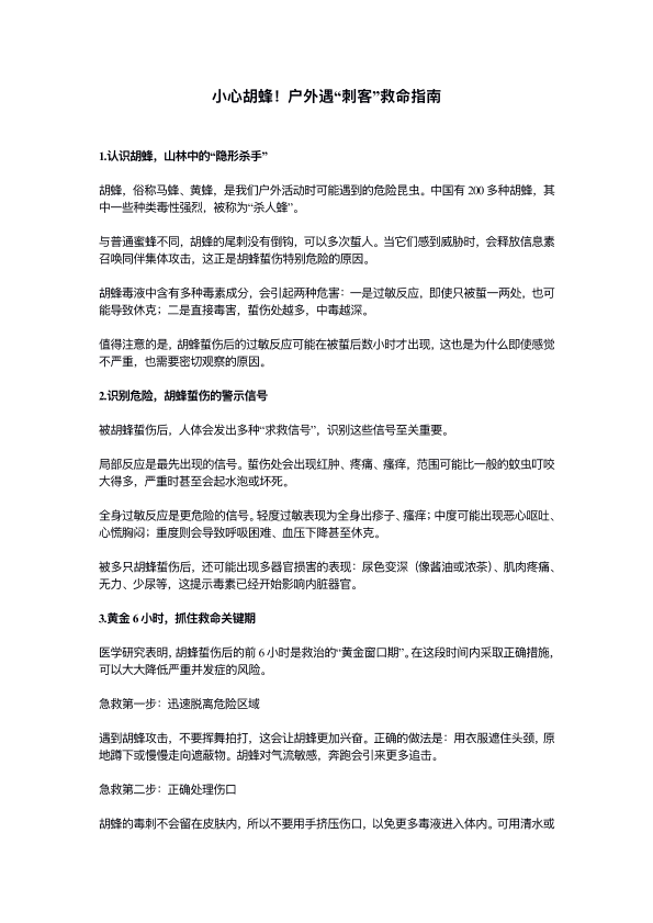 ⼩⼼胡蜂!户外遇“刺客”救命指南