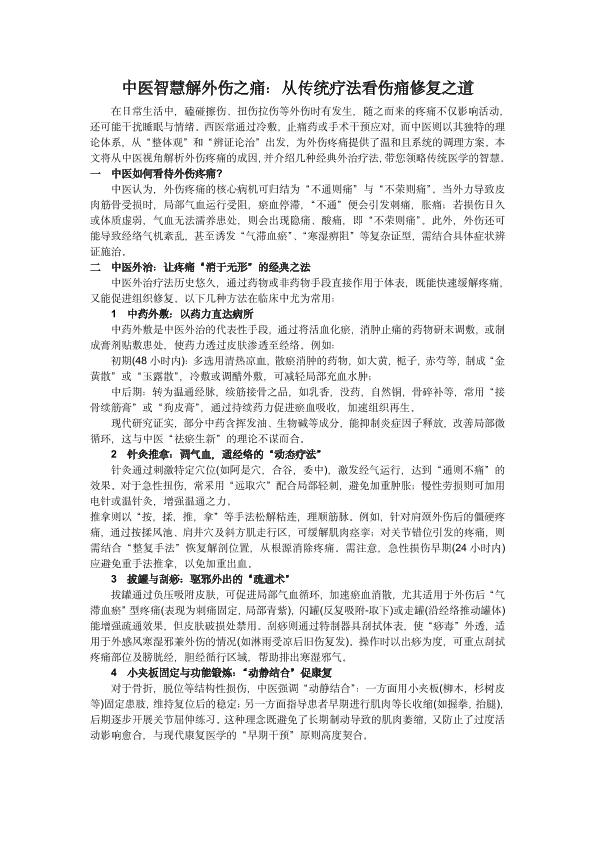 中医智慧解外伤之痛:从传统疗法看伤痛修复之道