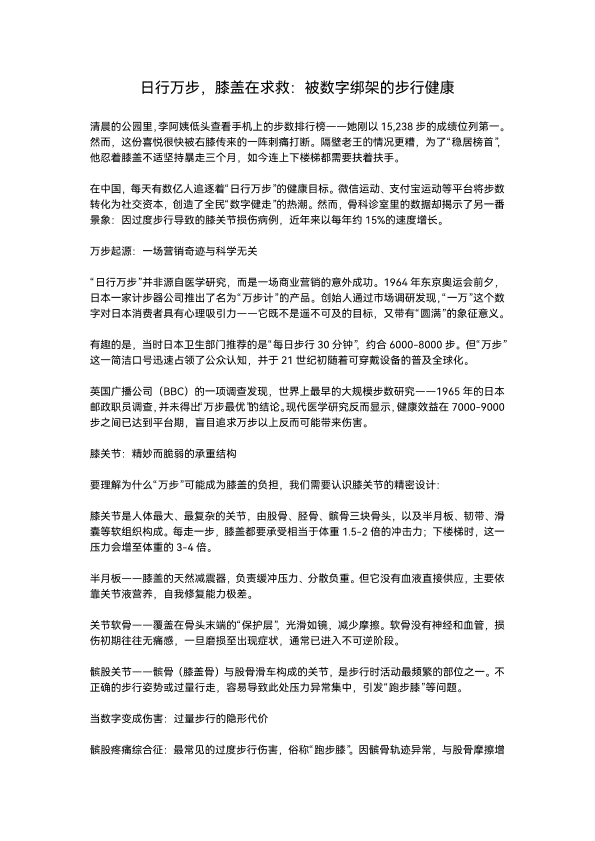 日行万步,膝盖在求救;被数字绑架的步行健康