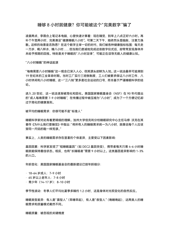 睡够8小时就健康?你可能被这个“完美数字”骗了