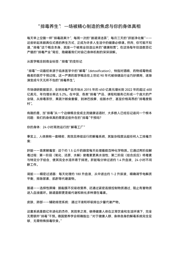 “排毒养生”:一场精心制造的焦虑与你的身体真相