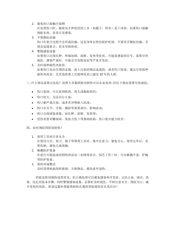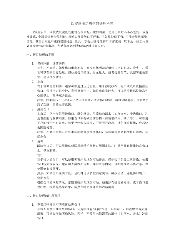 四肢皮肤切割伤口处理