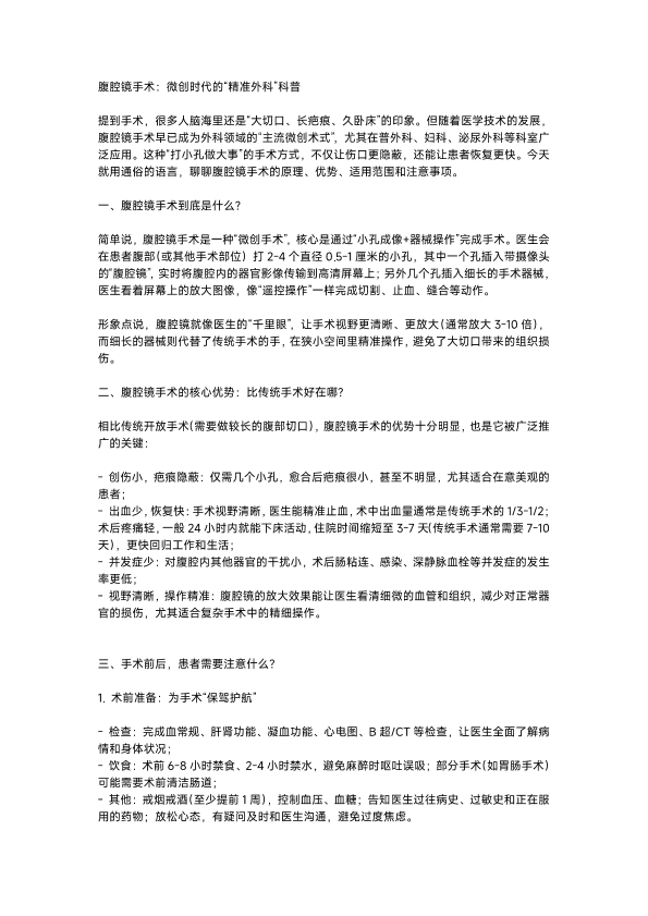 关于腹腔镜手术的科普