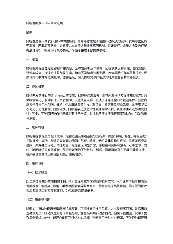 肺栓塞的临床诊治研究进展