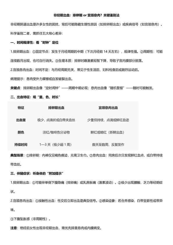 非经期出血:排卵期or宫颈息肉?关键鉴别法