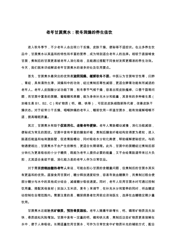 老年甘蔗煮水:秋冬润燥的养生佳饮