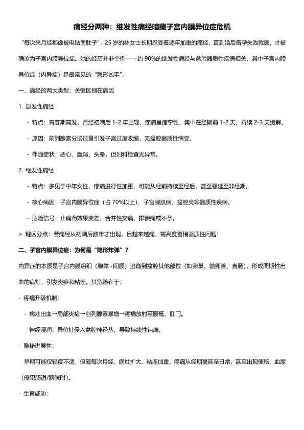 痛经分两种:继发性痛经暗藏子宫内膜异位症危机