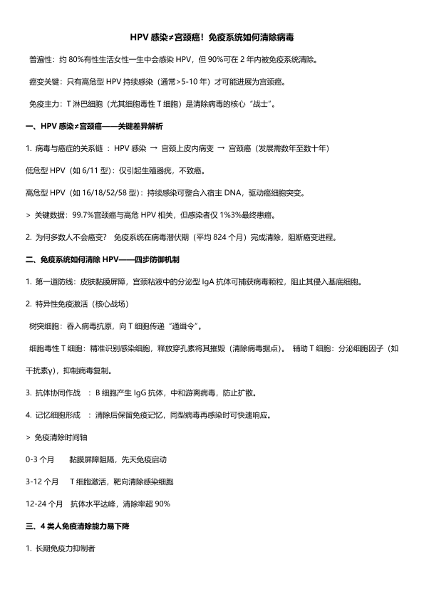 HPV感染≠宫颈癌!免疫系统如何清除病毒