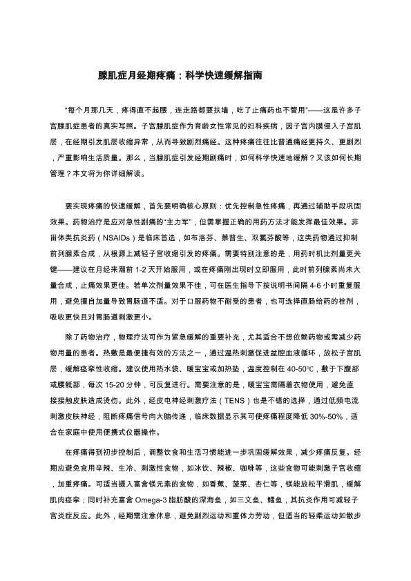 腺肌症月经期疼痛:科学快速缓解指南