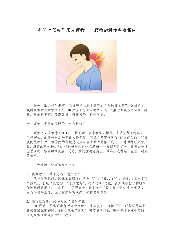 别让“低头”压垮颈椎——颈椎病科学科普指南