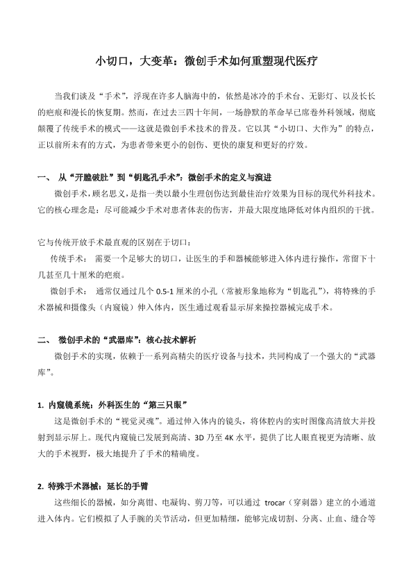 小切口、大变革:微创手术如何重塑现代医疗