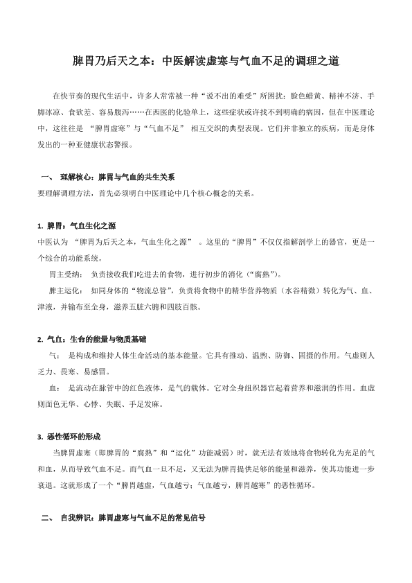 脾胃乃后天之本:中医解读虚寒与气血不足的调理之道